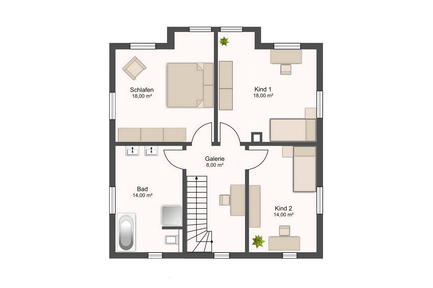 Die zeitlose Architektur unserer eleganten Stadtvilla begeistert Bauherren, die Wert auf stilvolles Wohnen legen. Zwei gleichwertige Vollgeschosse ohne störende Dachschrägen schaffen maximale Gestaltungsfreiheit und optimale Raumnutzung auf beiden Wohnebenen. Diese durchdachte Bauweise bietet mehr nutzbare Wohnfläche und erweiterte Möglichkeiten bei der individuellen Raumgestaltung – ein echter Mehrwert für anspruchsvolles Familienwohnen.